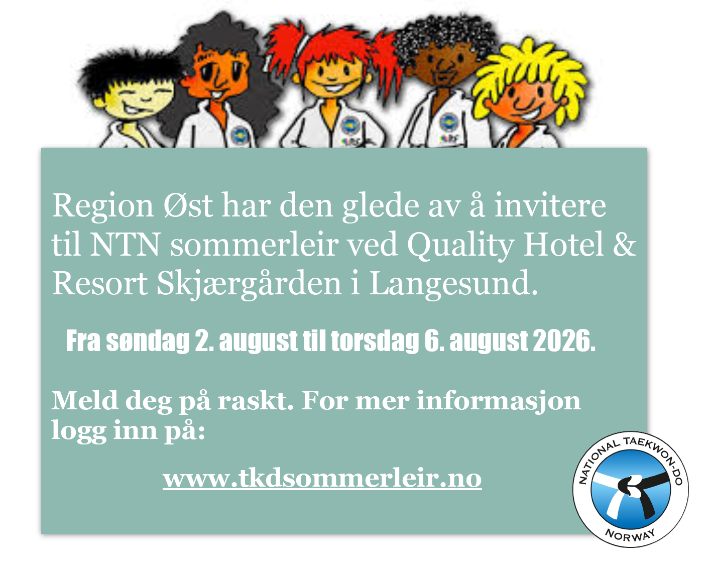 Sommerleir - Barn - 2026 Quality Hotel & Resort i Langesund InvitasjonPåmelding invitasjon Påmelding Påmelding gjør du her Les mer . Last ned invitasjon her Sommerleir Langesund 2026 - Barn